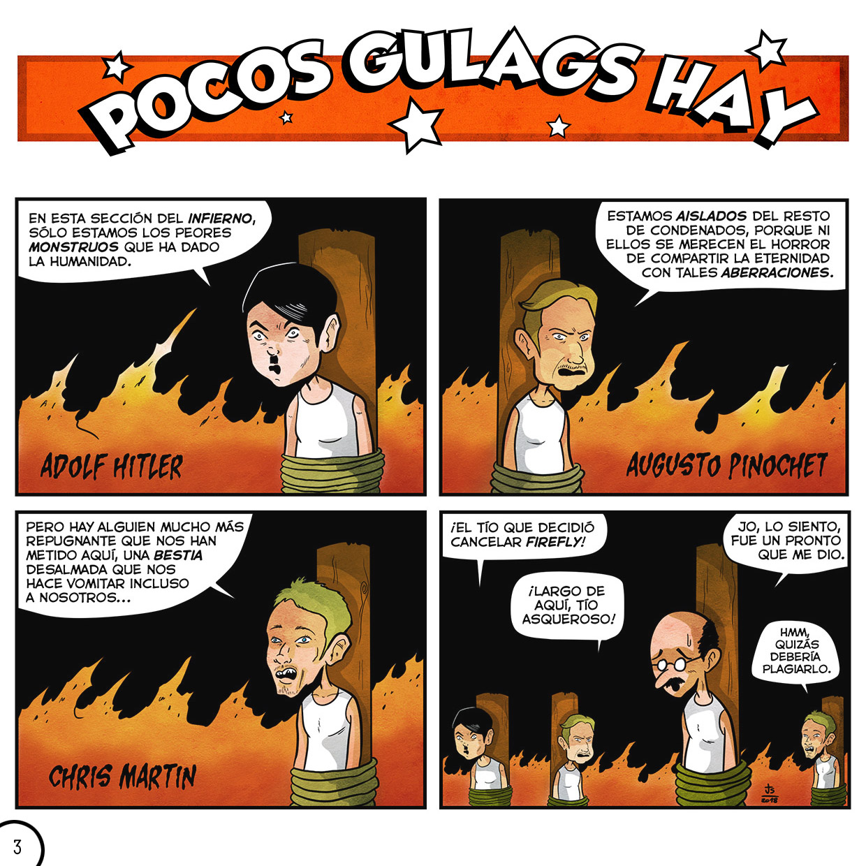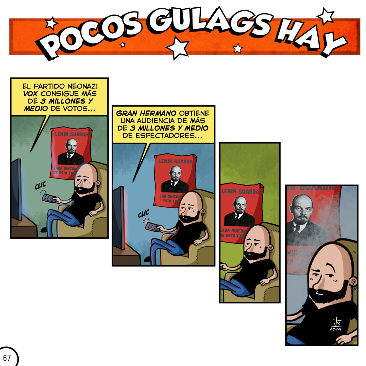 Un PDf que recopila todas mis tiras de sátira política y de actualidad publicadas a lo largo de dos años y medio en la aclamada página de Facebook “Pocos Gulags Hay“, con más de 1.000 seguidores. ¡Ahora puedes tener 126 páginas de risas por el precio de un café de los de Zapatero!