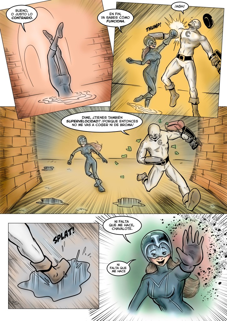 Tras el espectacular éxito del certamen, NanoGUNE nos encargó a los tres ganadores una segunda historieta, que fue mostrada en grandes láminas en una exposición en Donosti. Las tres nuevas historietas se recopilaron en un cómic que fue repartido de forma gratuita en colegios e institutos de todo el País Vasco. Mi historieta, en este caso, se tituló “Mister Llamas“:
