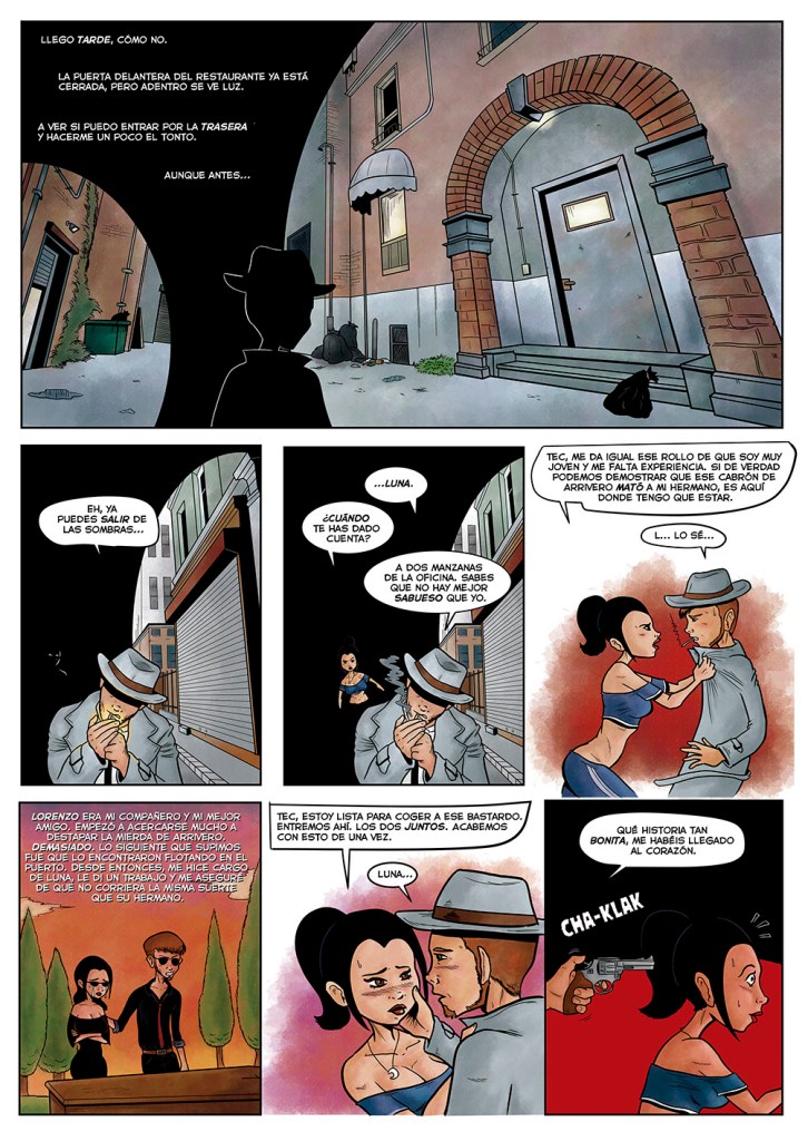 La editorial Cuocio publicó esta antología de historietas cortas de temática noir, para la cual se puso en contacto conmigo y me encargó un relato. Lo titulé “Sabuesos” y podéis verlo a continuación: